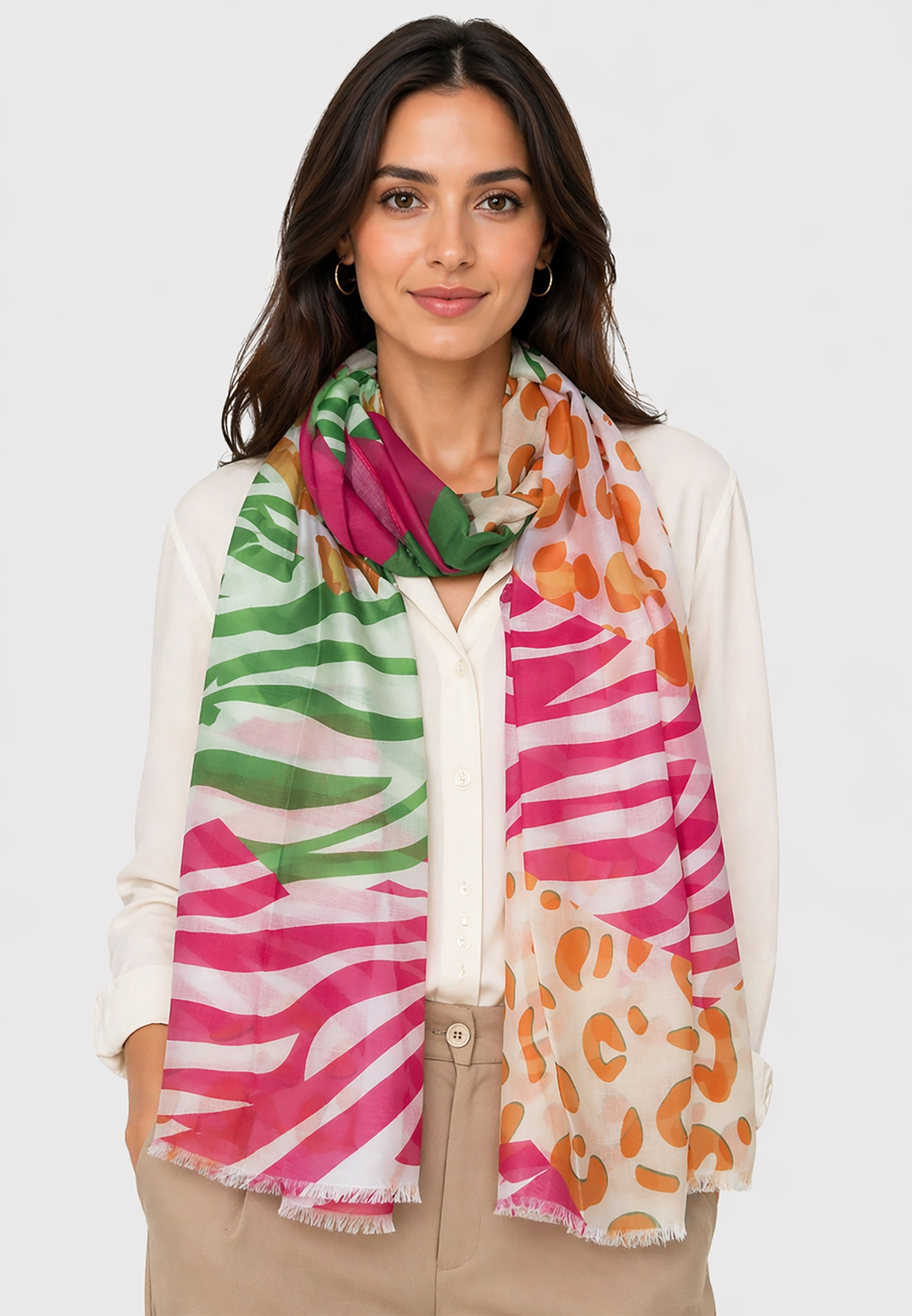 Der Schal fügt Ihrem Look eine raffinierte Note hinzu.