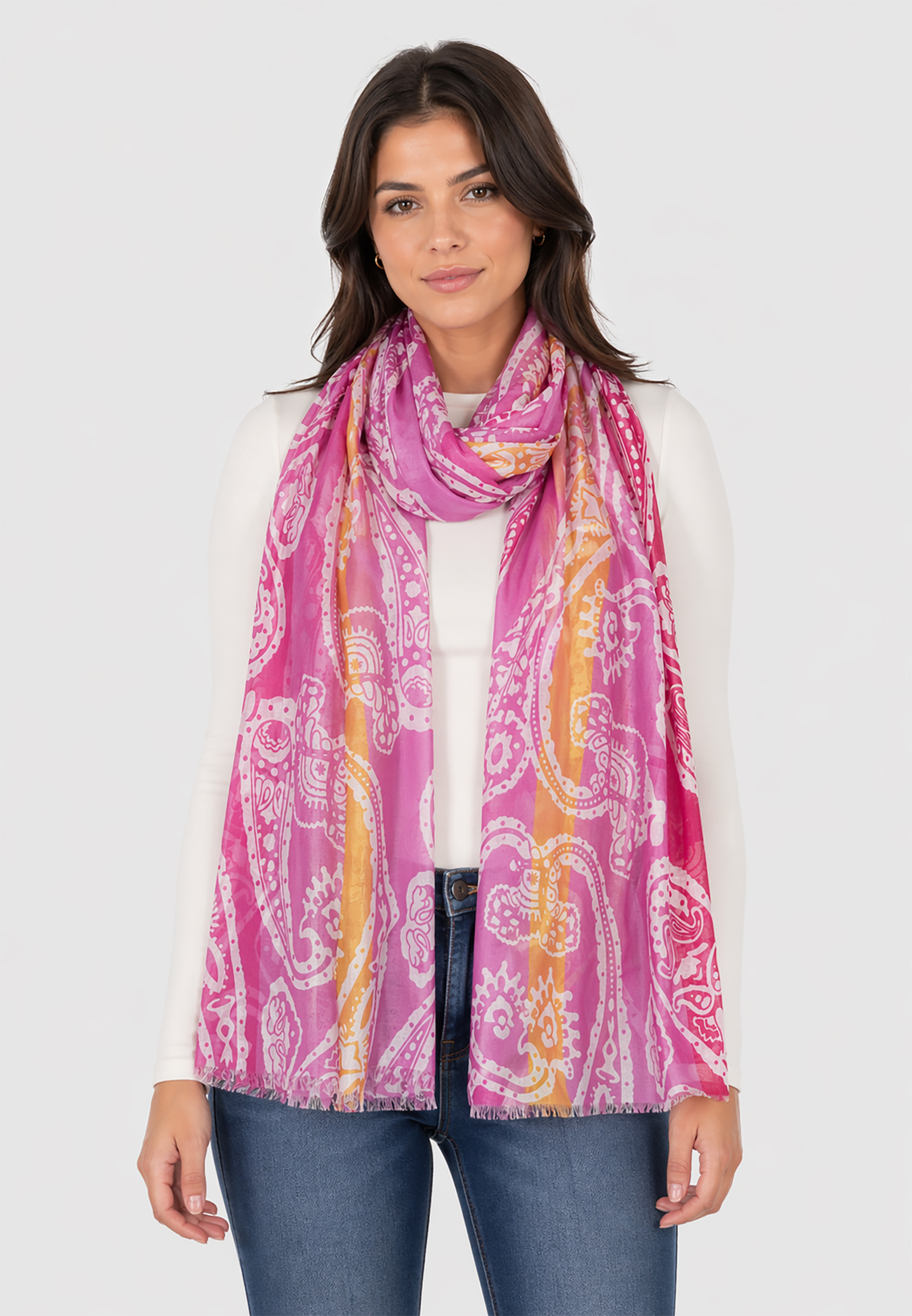 Leicht transparenter Schal Fransen Paisley Aufdruck Streifen