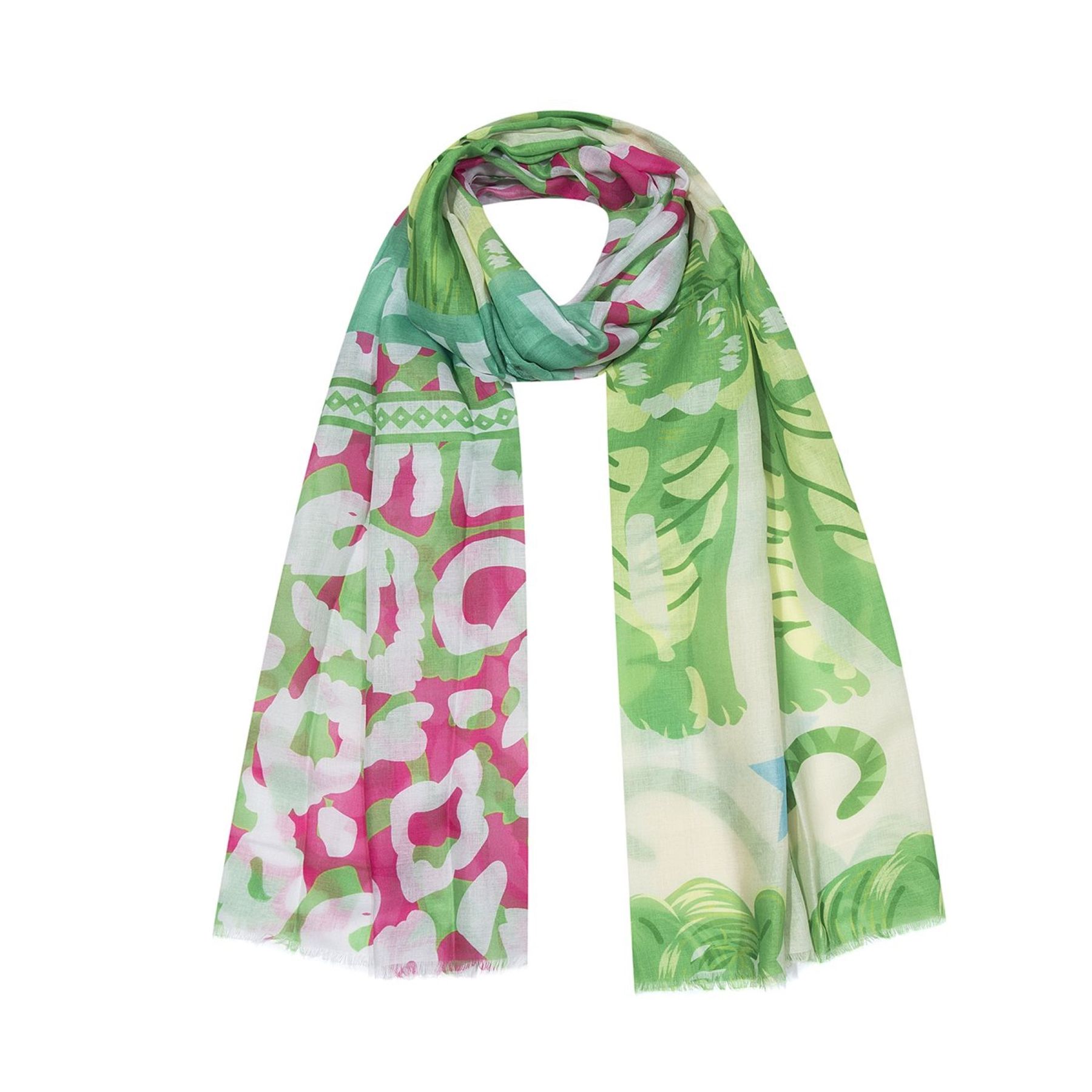 Leichter Strickschal Fransen Damen Accessoires Tigermotiv