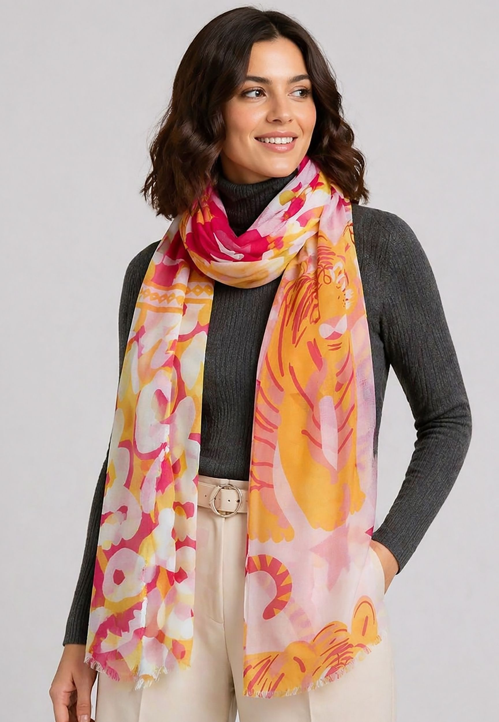 Leichter Strickschal Fransen Damen Accessoires Tigermotiv