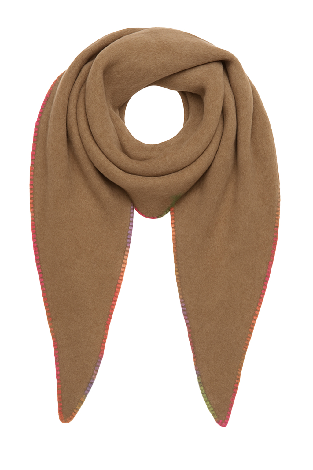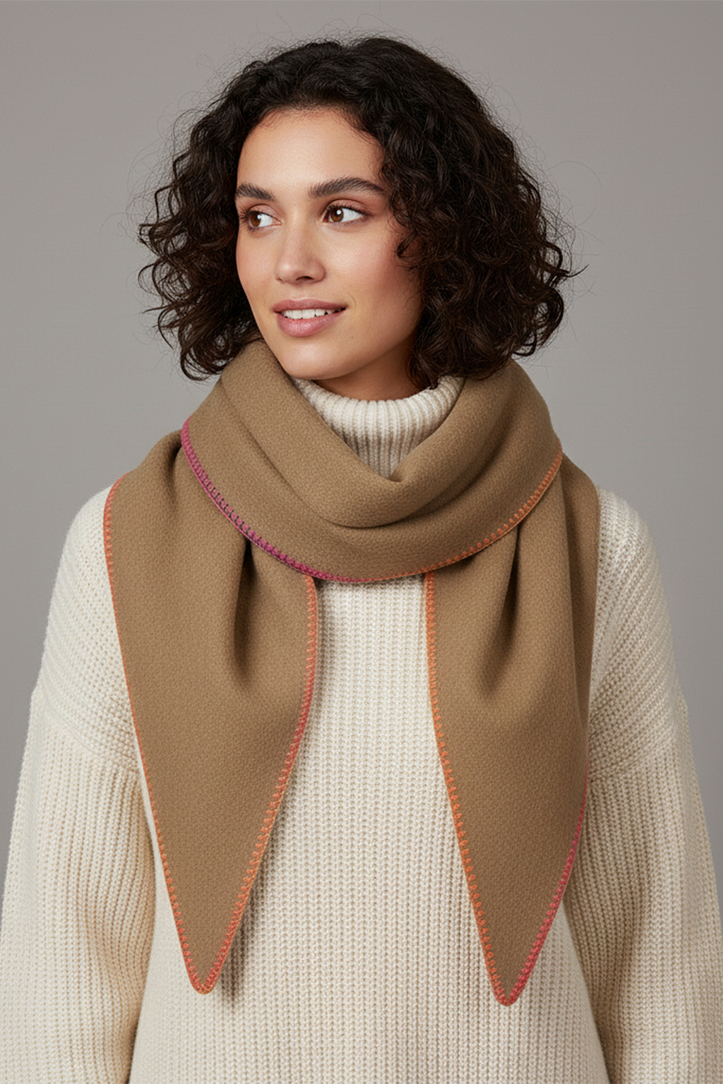 Weicher Schal in Dreiecksform mit farbiger Zierstichkante – modern und vielseitig.
