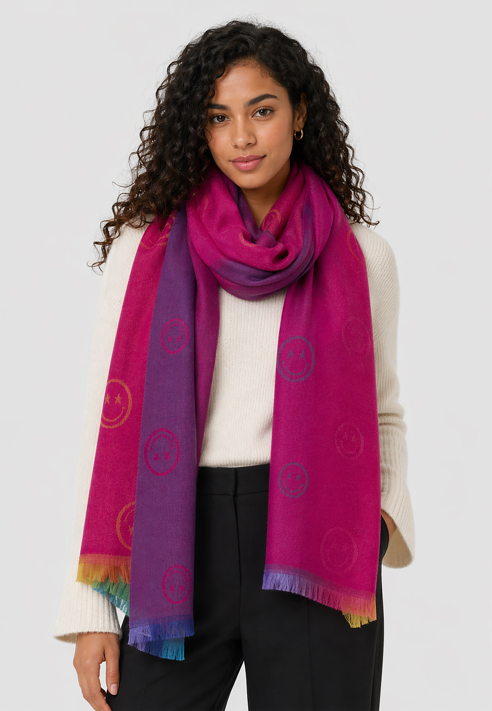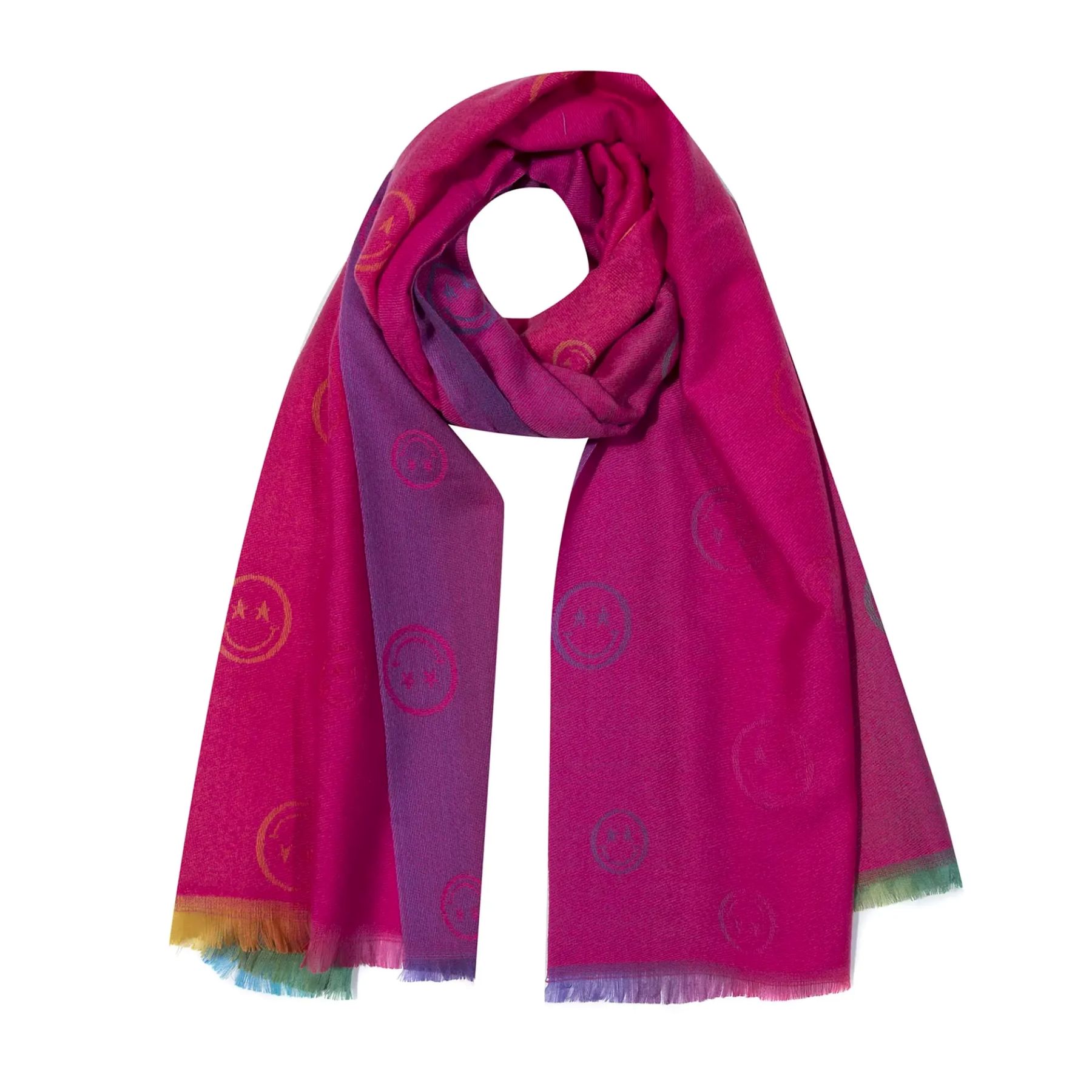 Weicher Schal Fransen Stickereien Smiley Motiv Farbverläufe