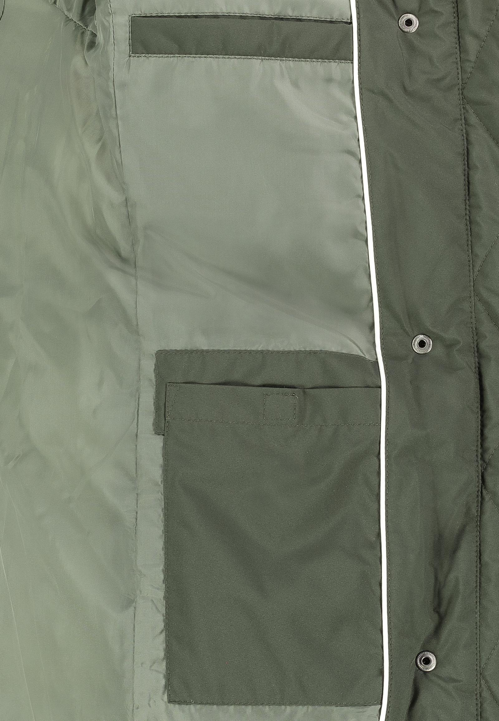 Die gesteppte Oberfläche verleiht dem Mantel Struktur, während der durchgehende Reißverschluss mit Druckknopfleiste zusätzlichen Windschutz bietet.