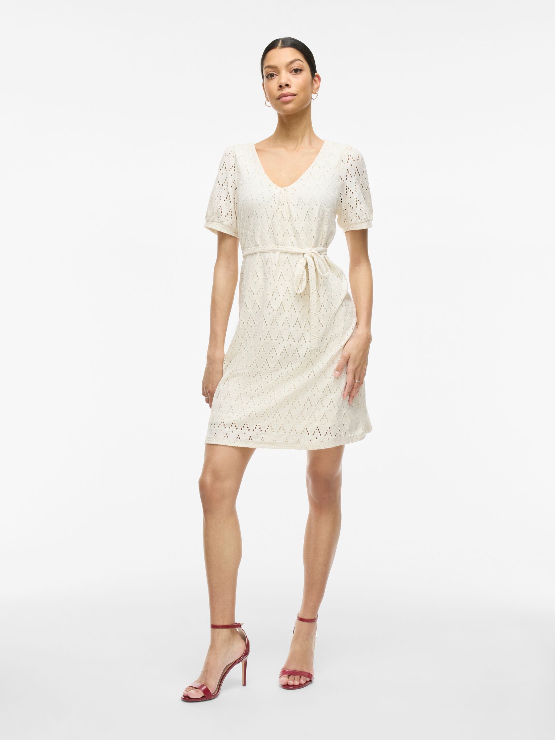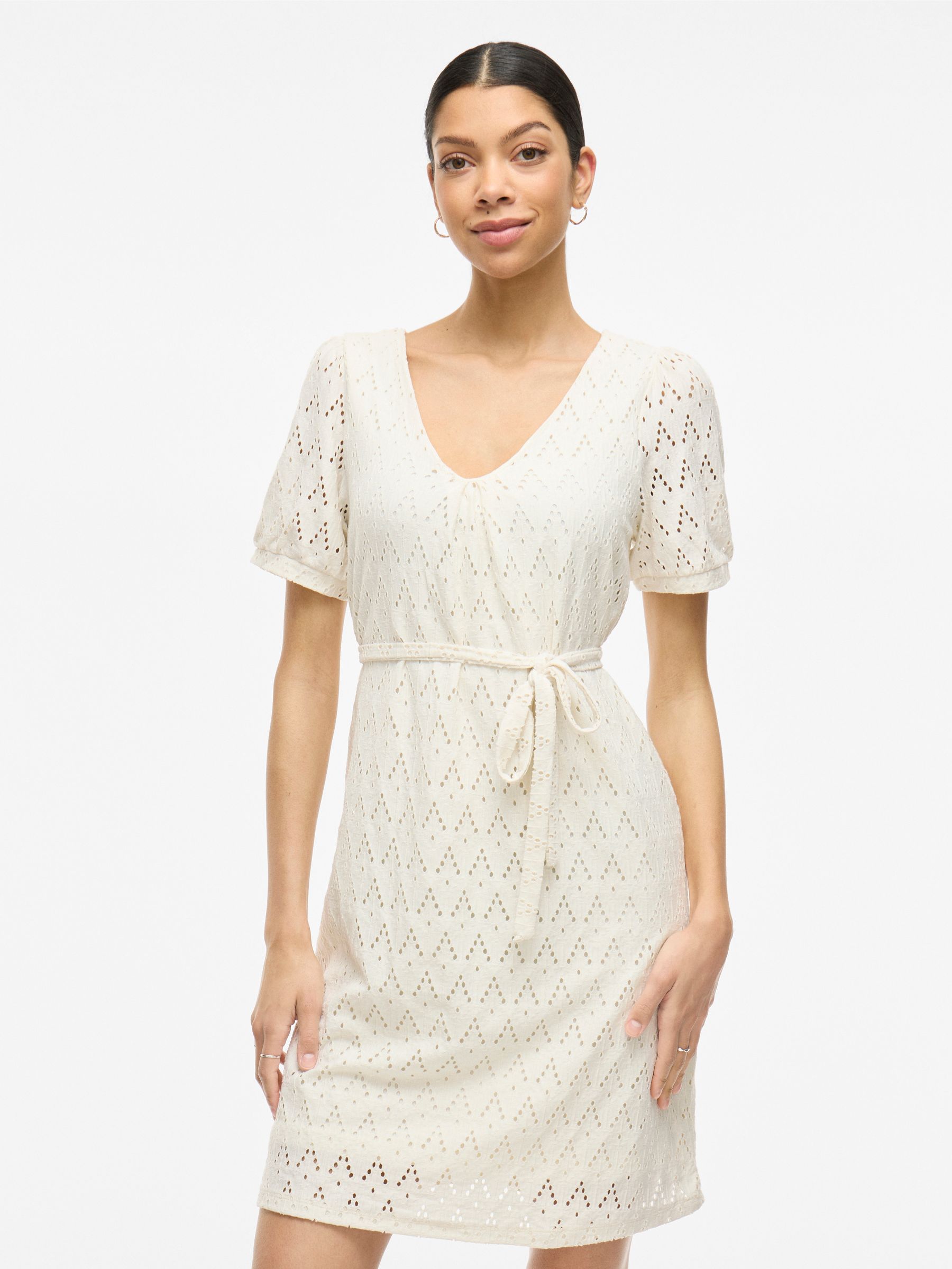 Elegantes Broderie Anglaise Kleid mit feinem Lochmuster.