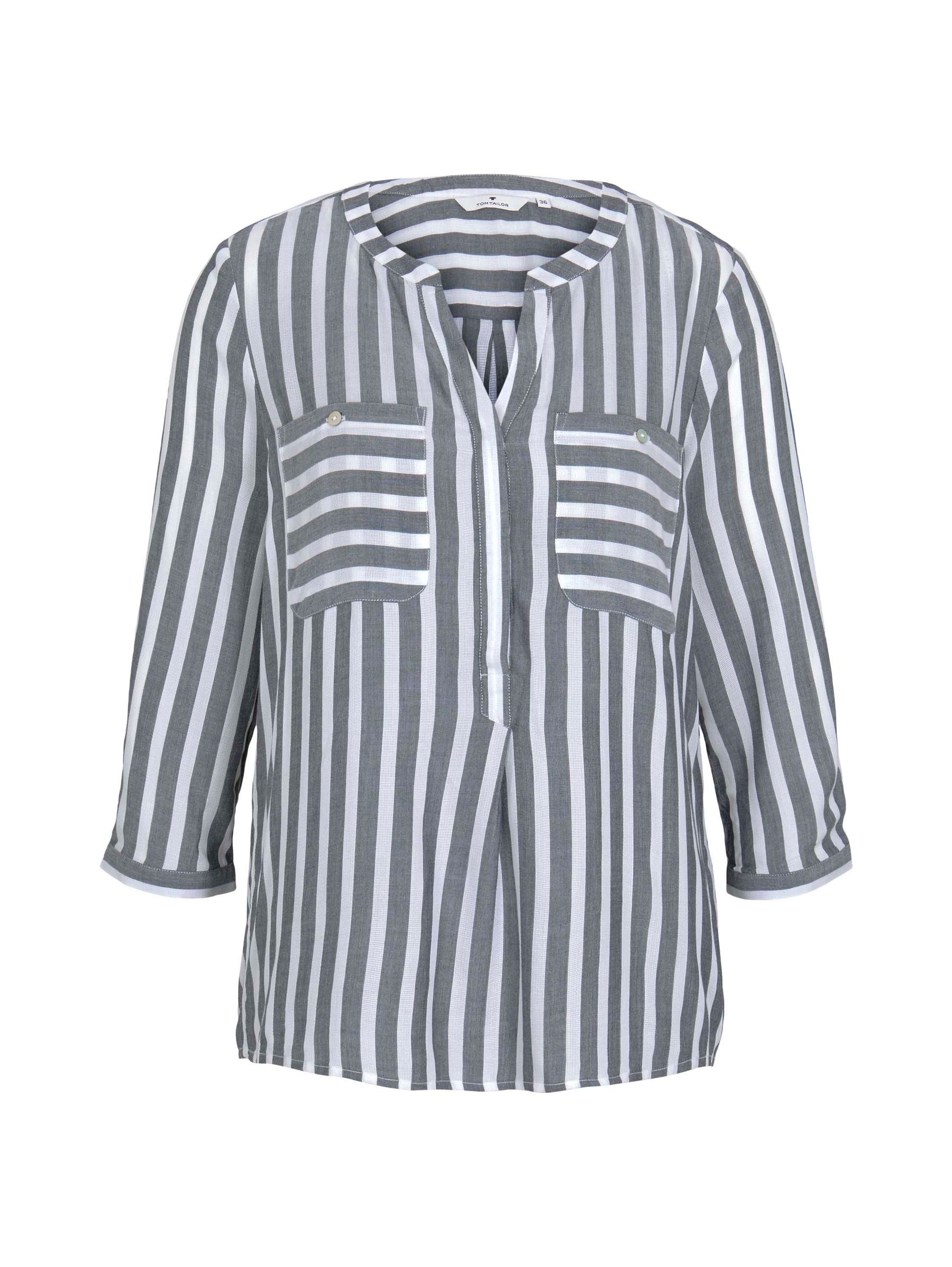 PERFEKT - Das 3/4 Arm Blusen Oberteil überzeugt durch hochwertige Verarbeitung im gestreiften Design. Passend auf all Deine Outfits mit Henley V-Ausschnitt und Manschetten Armabschluss.