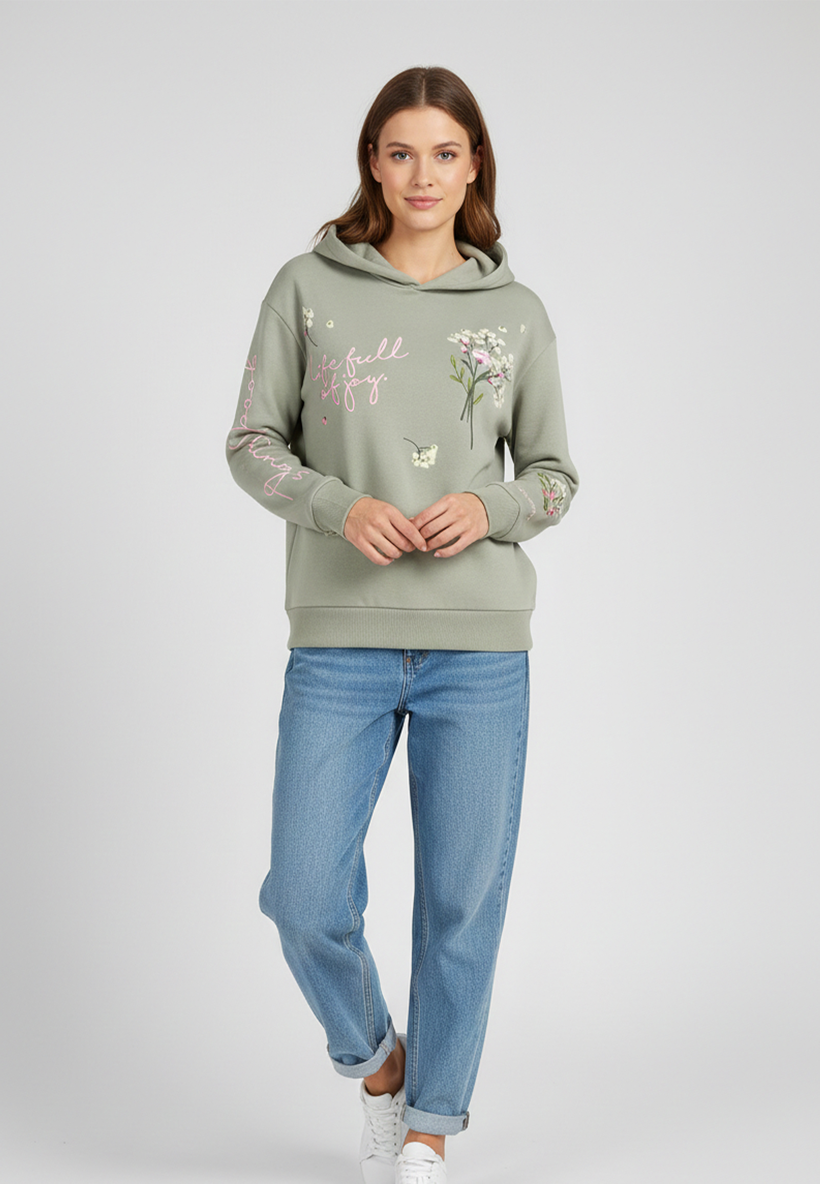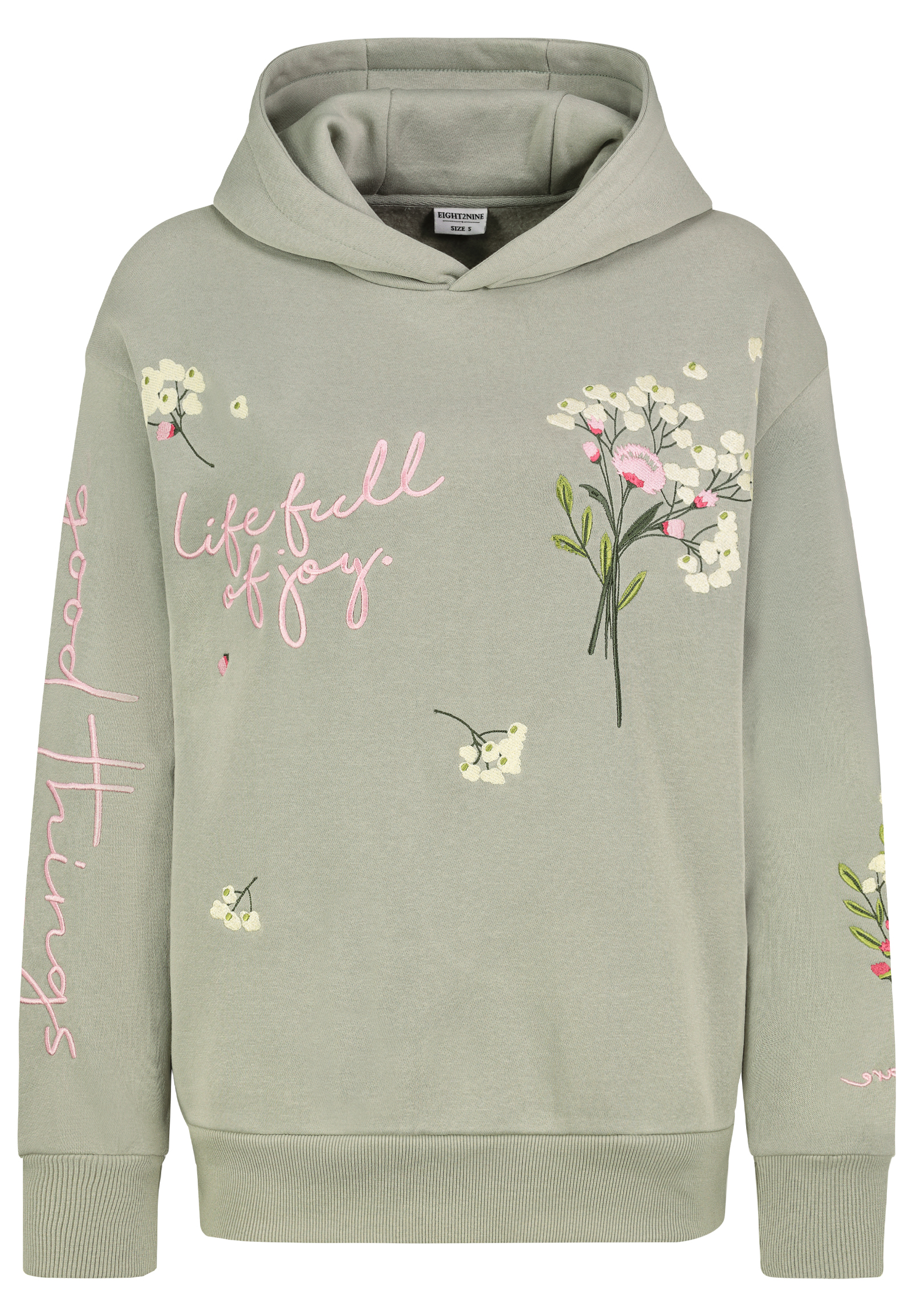 Entdecken Sie den charmanten Sweat Hood von Eight2Nine, der mit zarter Blumenstickerei Ihre Garderobe erfrischt.
