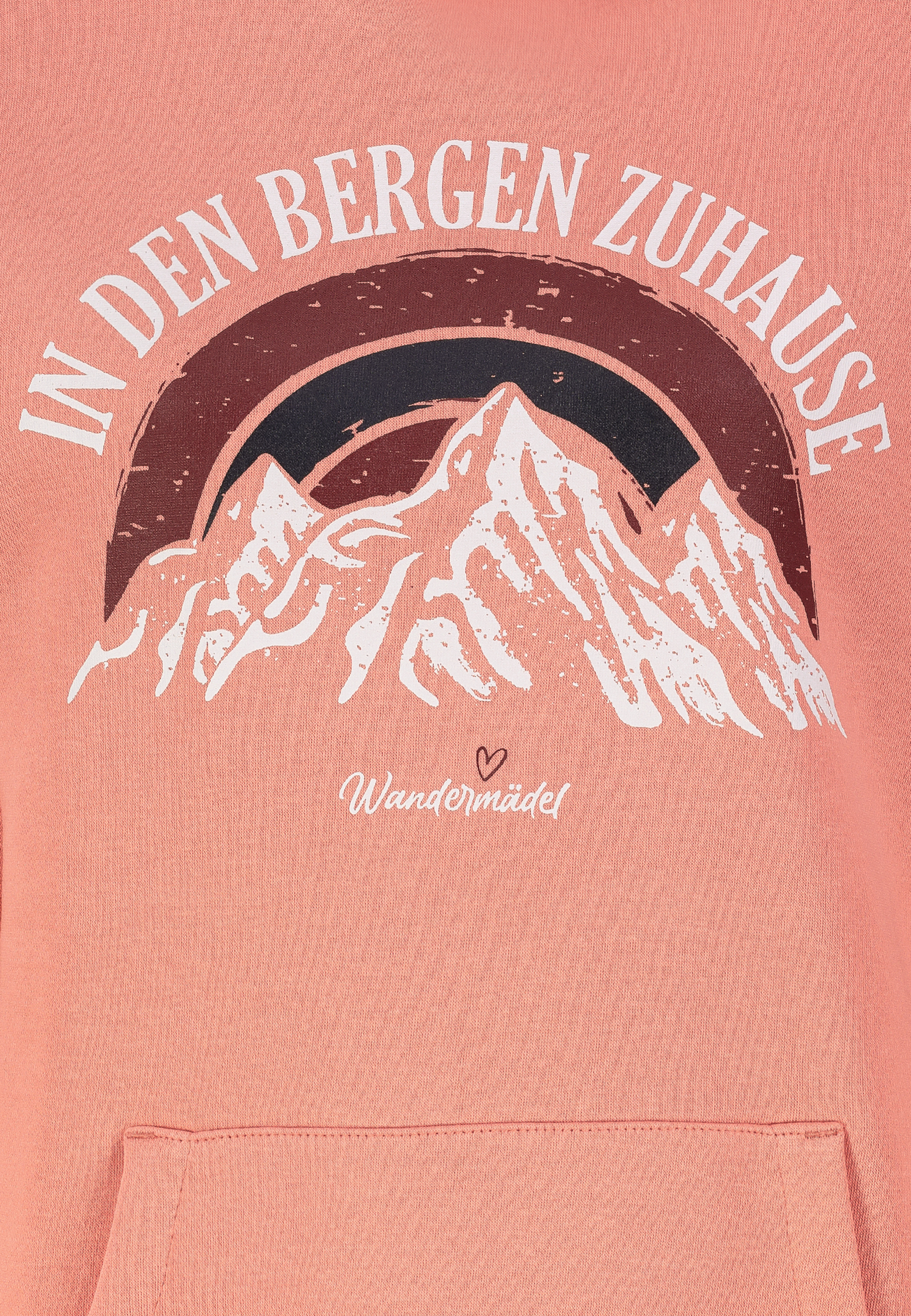Der Sweat Hood besticht durch sein ansprechendes Berg-Design und den motivierenden Schriftzug IN DEN BERGEN ZUHAUSE, der Abenteuerlust weckt.