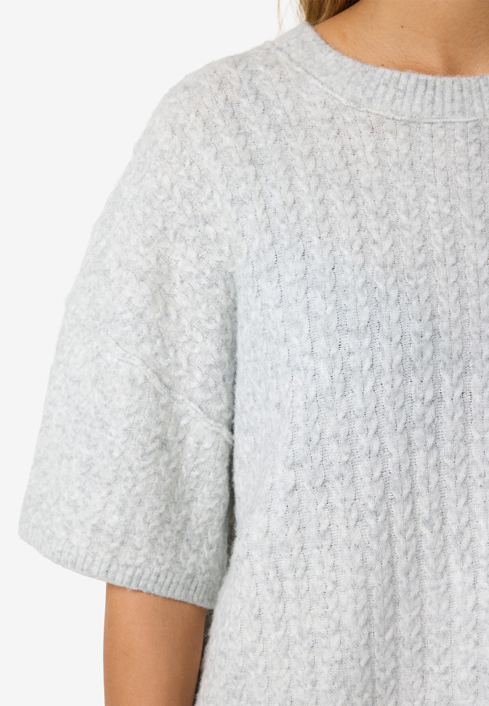 - Ausdrucksstarkes Zopfstrickmuster für einen klassischen und zeitlosen Look.