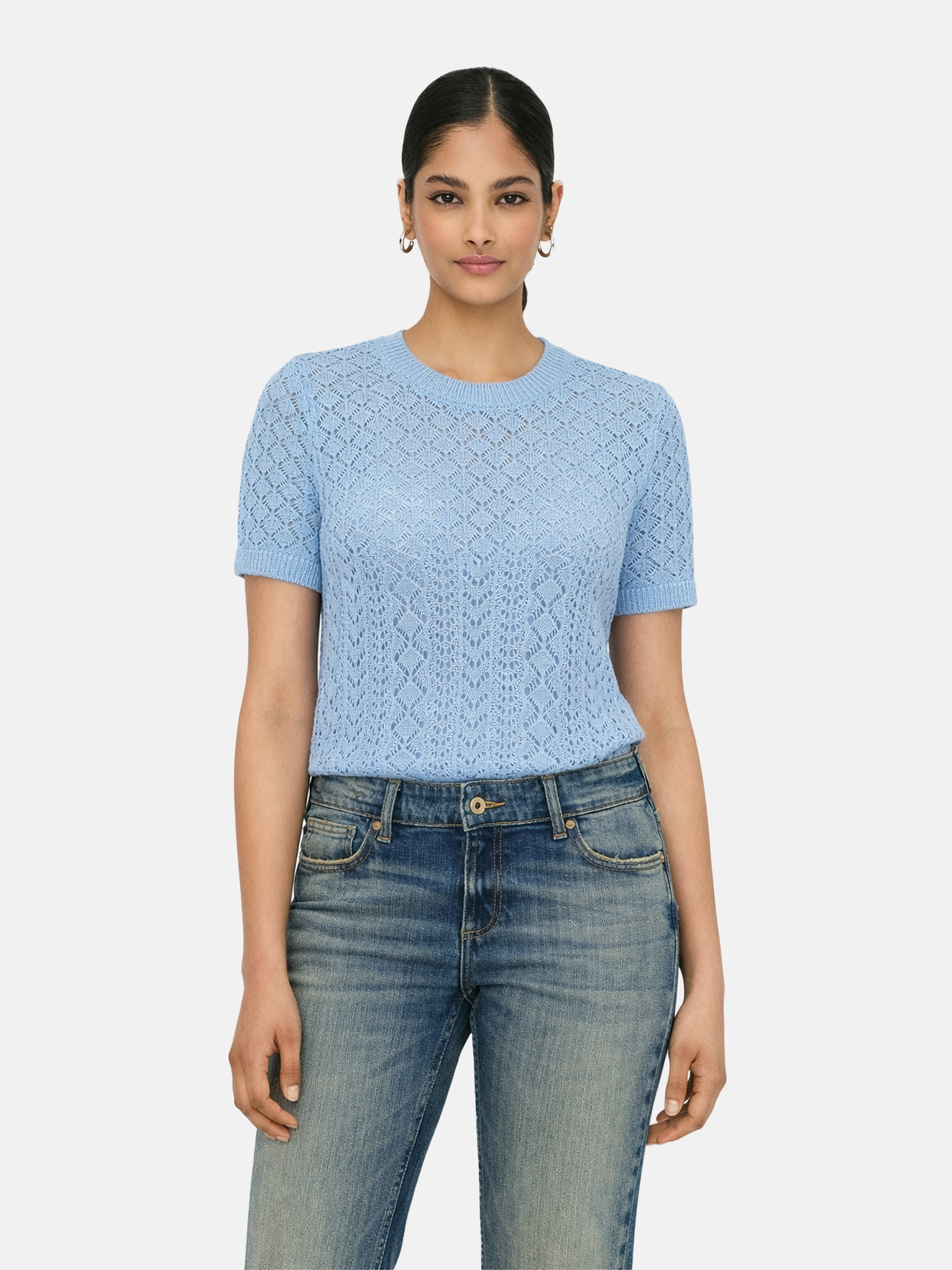 - Kurzärmeliger Pullover mit Häkeleinsätzen und elastischem Bund für besonderen Look