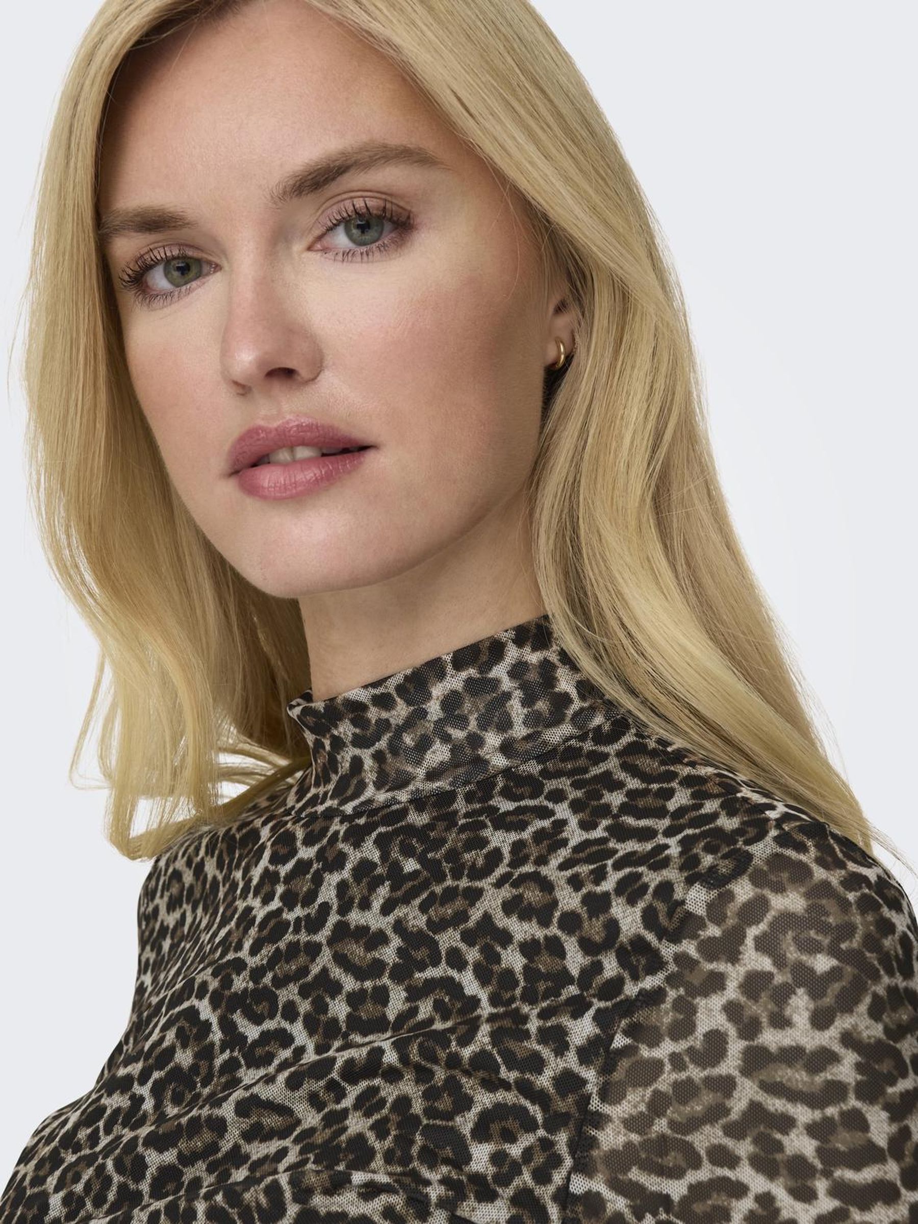 Das hochgeschlossene Design bietet einen eleganten Look, während die Mesh-Details eine trendige Note hinzufügen.