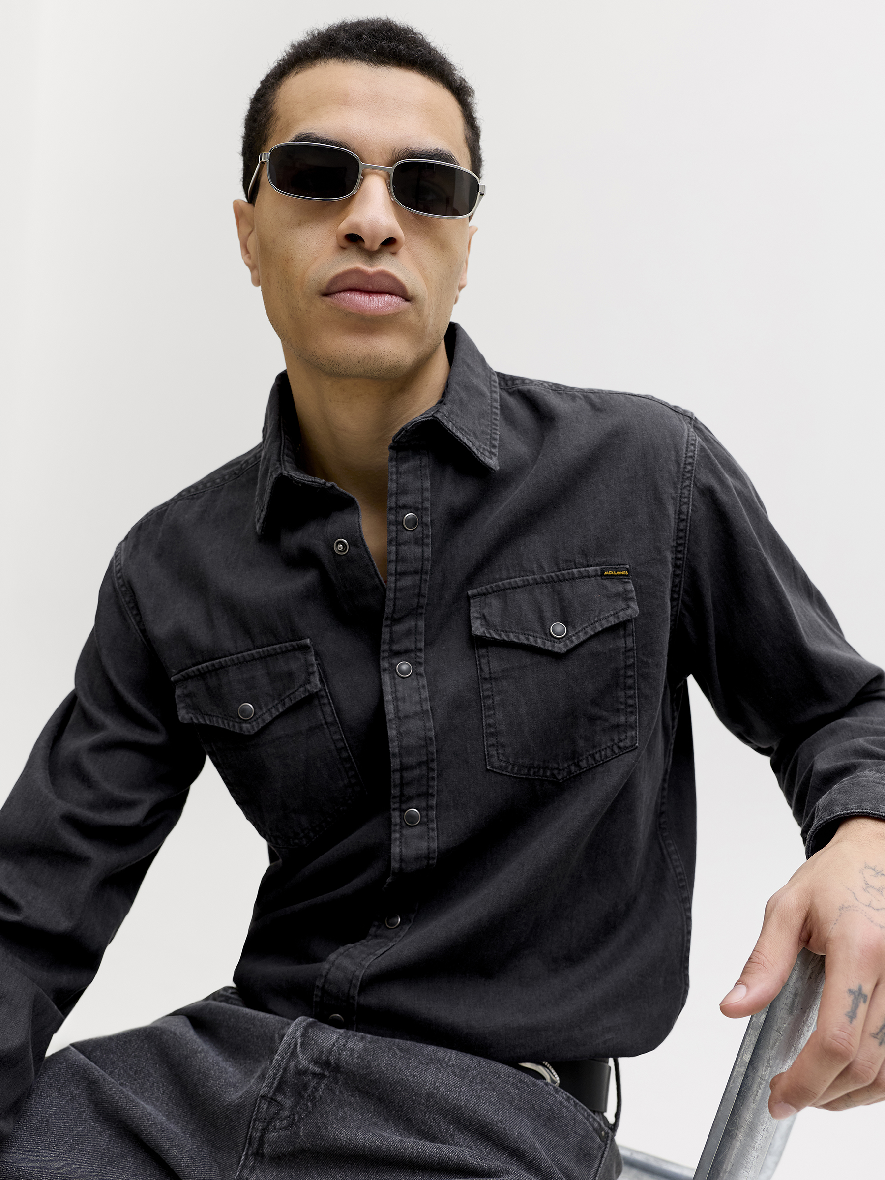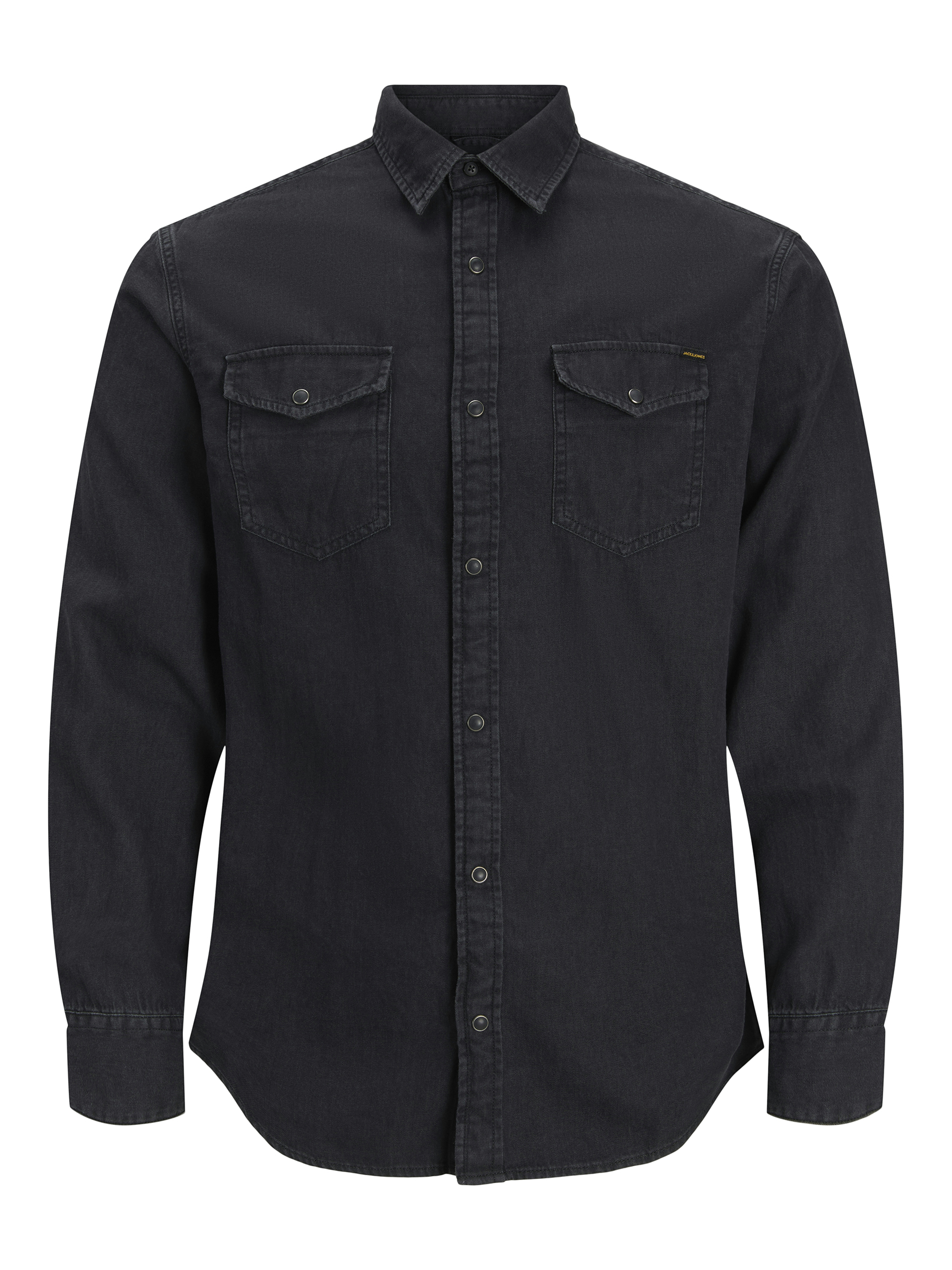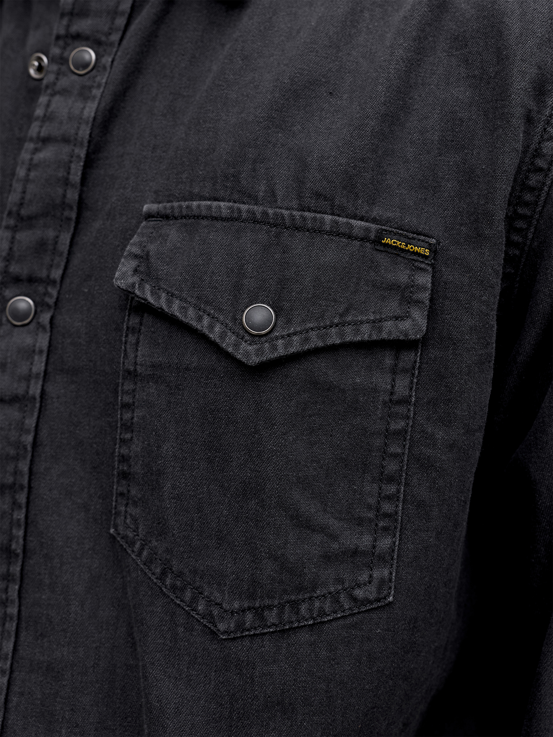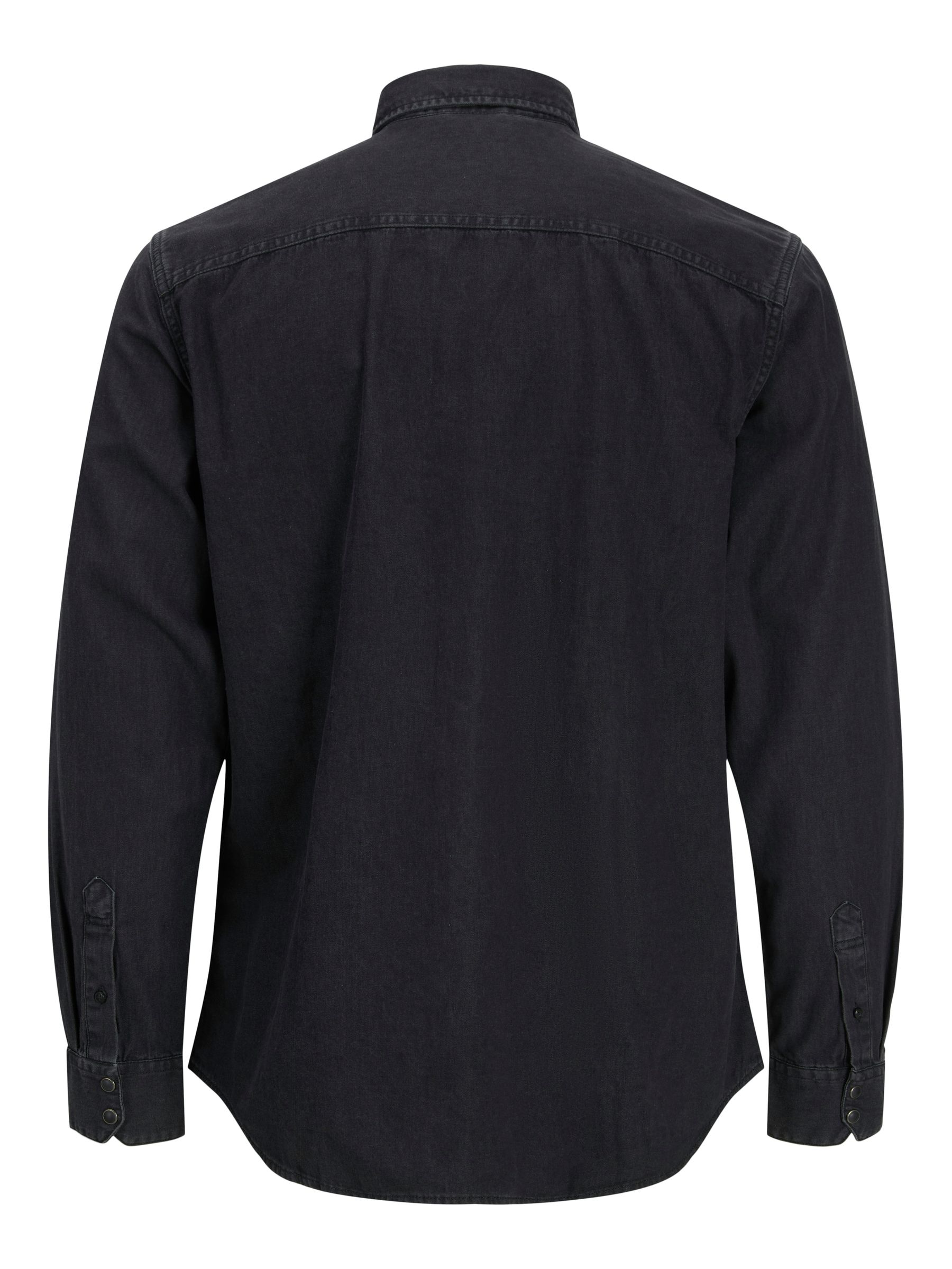 Das unifarbene Black-Denim-Design mit dezenten Waschungen und stabilen Ärmelmanschetten mit Knopf verleiht dem Hemd eine moderne und maskuline Optik und macht es zu einem zuverlässigen Begleiter in jeder Saison.