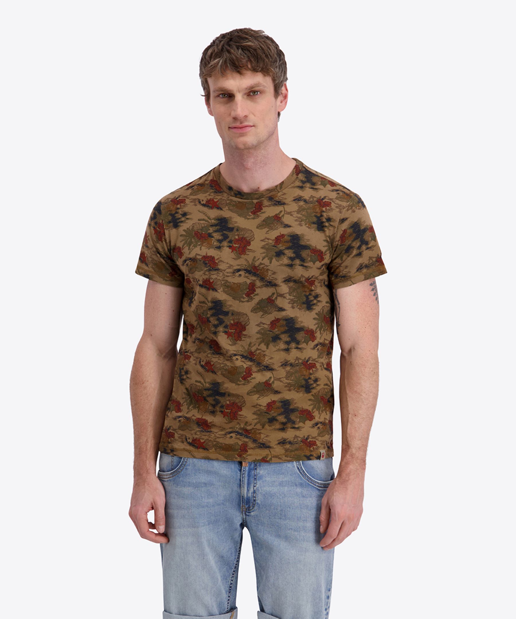 - Floral bedrucktes T-Shirt mit Rundhalsausschnitt für lässigen Stil und Komfort.