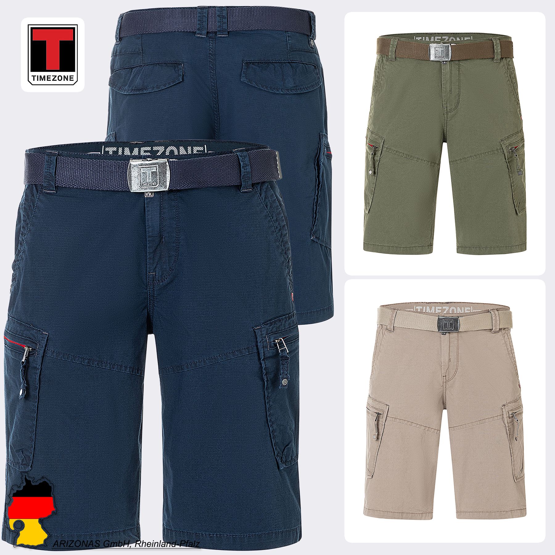 Cargo-Shorts Gürtel Knielang Regular Fit Reißverschluss